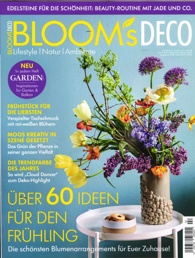 BLOOM’s Deco on Saksamaa elustiili- ja sisustusajakiri, mis keskendub lillede, taimede ja looduslähedase disaini maailmale. Ajakiri pakub inspiratsiooni kodu ja aia kaunistamiseks, tutvustades nii hooajalisi dekoratsioonitrende kui ka praktilisi ideid nende elluviimiseks. Lisaks leiab sealt samm-sammulisi DIY-projekte, floristilisi lahendusi ning ideid pidulike lauakatete ja interjööride loomiseks. Väljaanne paistab silma kvaliteetse fotomaterjali ja visuaalselt esteetilise kujunduse poolest. BLOOM’s Deco on suunatud kõigile, kes hindavad loomingulist ja looduslähedast elustiili.